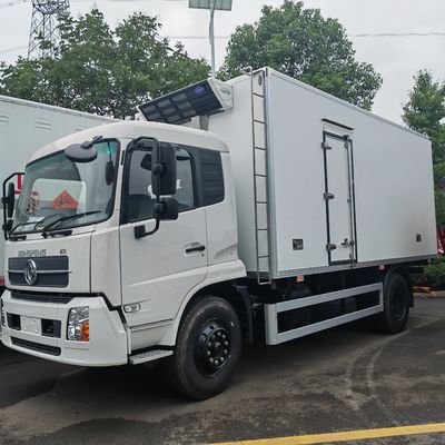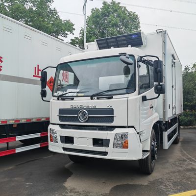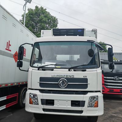 Die Dongfeng KR-Plattform ist ein beliebtes mittelschweres Lkw-Chassis, das von zahlreichen Herstellern von Spezialfahrzeugen in China verwendet wird, um kundenspezifische Aufbauten zu erstellen, darunter Kühltransporter (Kühlwagen), die auch über hydraulische Hebebühnen verfügen können, um das Be- und Entladen zu erleichtern.