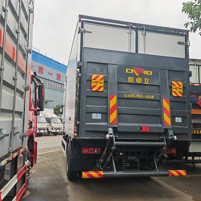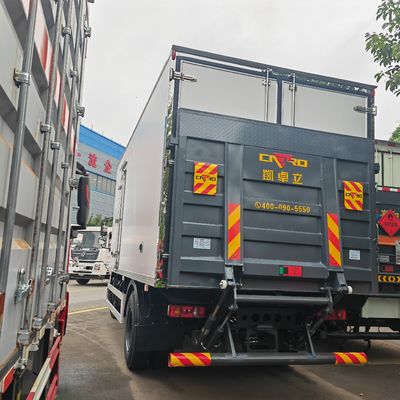 Hydraulische Hebebühne:Obwohl die allgemeinen Kühlwagen-Angebote dies nicht immer angeben, ist eine hydraulische Hebebühne (oder Ladebordwand) ein häufiges optionales Merkmal bei Nutzfahrzeugen, insbesondere bei solchen, die für die Auslieferung verwendet werden (wie Food Trucks oder Transport), um schwere Gegenstände wie große Gefrierboxen oder Paletten einfach zu be- und entladen.