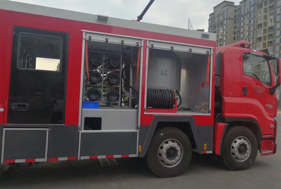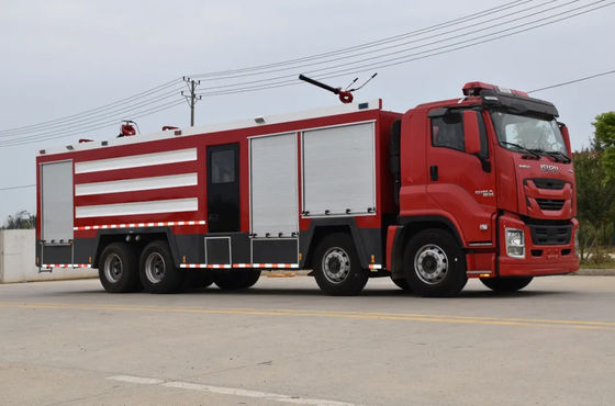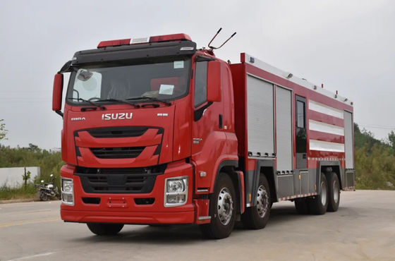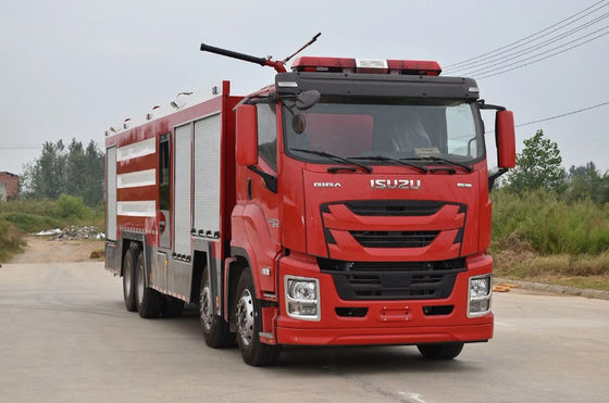 The ISUZU combined fire fighting truck with 12,000 liters of water, 3,400 liters of foam, and 2,000 liters of dry powder is a multi-functional apparatus designed to handle a wide variety of large and complex fire scenarios.