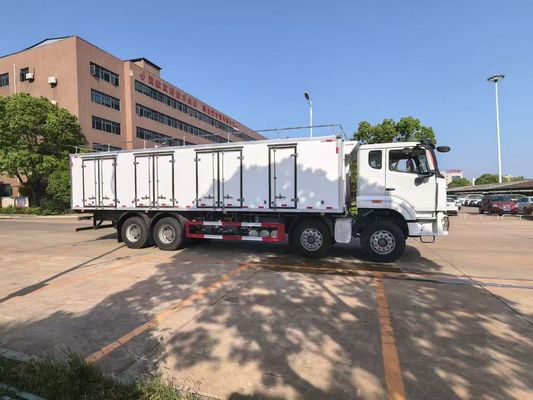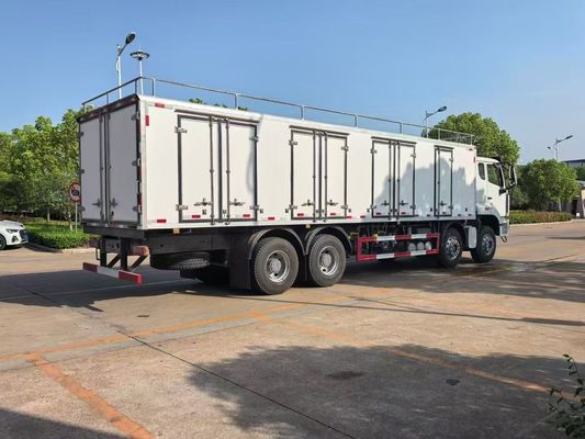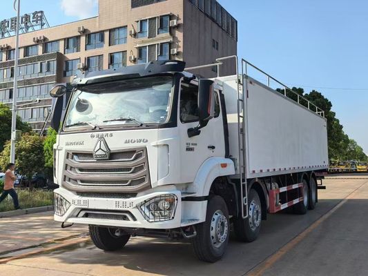 Sinotruk HOWO refrigerated wagon with meat hook vehicles is a specialized cold chain transport truck designed for the safe and hygienic transport of hanging meat carcasses.