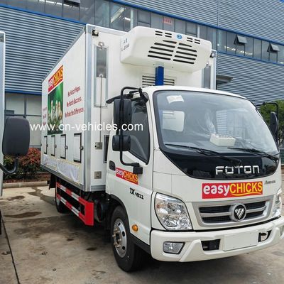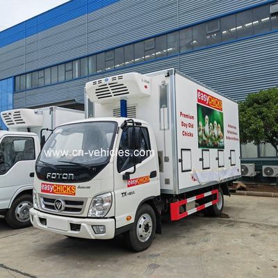 The Foton 4x2 day-old baby chicken transport truck is a specialized refrigerated or insulated van used for safely transporting newly hatched chicks (usually less than 24 hours old) from a hatchery to a farm. The key feature of these trucks is the controlled environment to ensure a high survival rate for the delicate cargo.