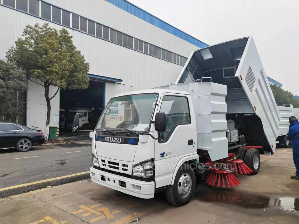 road sweeper truck (also called street cleaning truck , truck mounted sweeper , Road cleaning truck , street sweeping truck ) Is used for all cleaning , brushing and vacuum collecting of surface dusts , leaves , mud , soil , sand , stone chips , gravels and other small particles on the ground of city / municipal roads and areas .