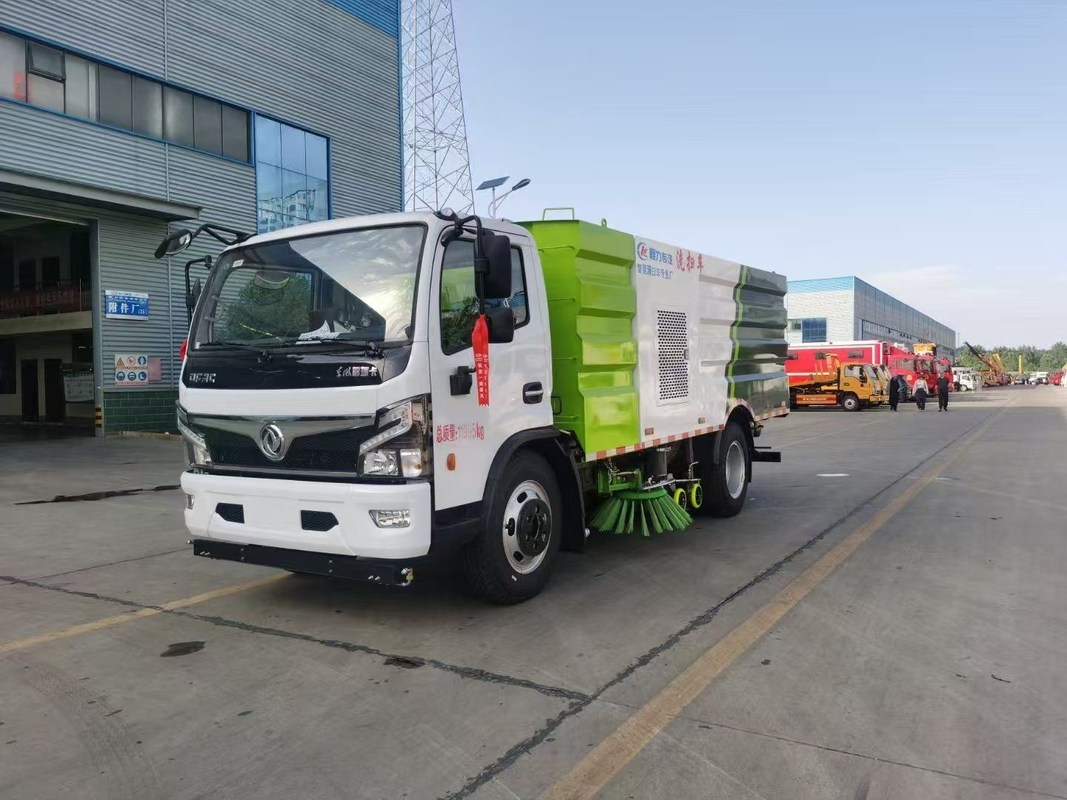The Dongfeng Road Washing Truck Mounted Vacuum Street Sweeping Truck is a multi-functional sanitation vehicle that integrates the functions of a sweeper, sprinkler, and high-pressure washing truck. It is designed for efficient and comprehensive cleaning of urban roads and pavements.