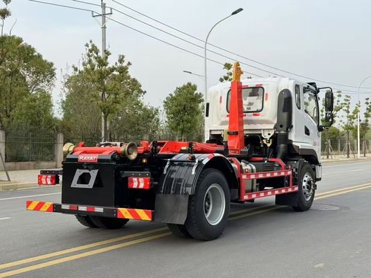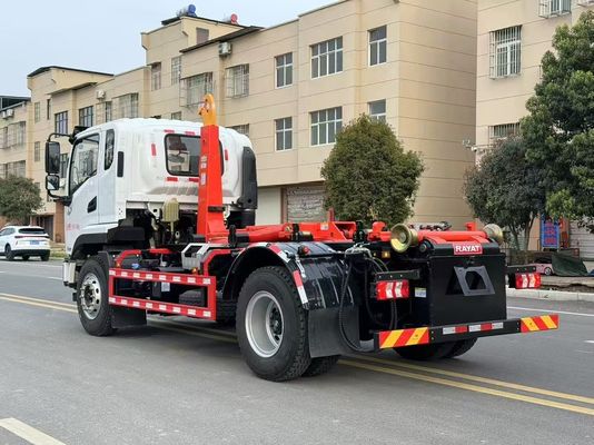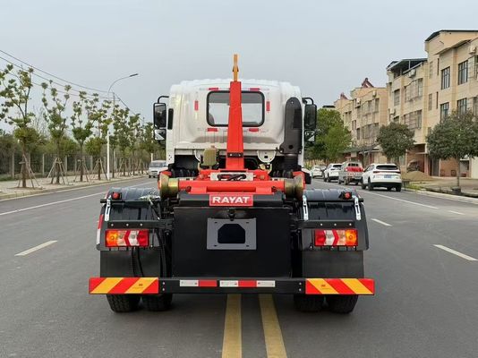 6×4 Dongfeng 18 ton to 20 ton hook arm garbage truck Top-loading configuration: supporting 16-20m3 trash cans, the body of which is made of high-quality carbon steel plates of Wuhan Iron and Steel Group, can also be used with mobile compression trash cans of the same level, the hook arm is made of high-strength high-quality manganese steel, and the subframe is made of low-alloy 16 Channel steel, No. 20 square tube and 8mm, 5mm, 4mm, 16Mn steel plates are welded together, the action design of the flip frame and movable hook arm garbage truck is reasonable and reliable, and the operation of pulling box, locking, putting and unloading is simple and convenient, and the control The method is the intelligent control of the cab, and it can also be controlled by the optional traditional operating lever outside the cab according to user needs.