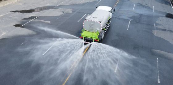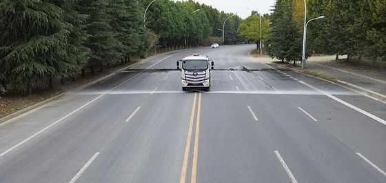 Multi-Directional Spraying: Includes front spray nozzles (for road flushing), side sprays, and rear fan-shaped sprinklers for dust reduction.