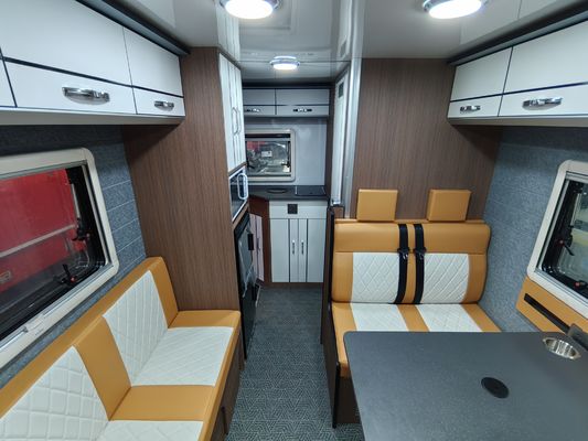 | E0 environmentally friendly RV-specific panels, enhanced sound insulation and noise reduction, middle door/screen door, soft-padded driver and passenger seats, wear-resistant waterproof flooring, 2 pairs of front and 4 pairs of rear dinettes, rear toilet(can pull of from outside), overhead bed + overhead bed ladder, large stainless steel sink, induction cooker, pneumatic lift table, safety hammer + smoke detector, microwave oven, toilet exhaust fan, awning + outdoor lighting, deluxe electric step for the middle door, 24V DC air conditioner, external pull-out stove, induction cooker. 800W solar water heater, imported diaphragm water pump, approximately 200L fresh water tank, approximately 130L waste water tank, toilet, hot and cold water supply system, bathroom shower head + sink + vanity mirror + towel rack, water heater, separate bathroom, lighting + reading light + ambient light, dinette seating, reversing camera, dual battery isolators + 40A leakage protection device, deluxe push-button switch panel, 3000W sine wave inverter, 220V AC input socket + 15m power cord, 220V output socket + USB, 12V 600AH lithium iron phosphate battery, RV-specific DC refrigerator. | |||